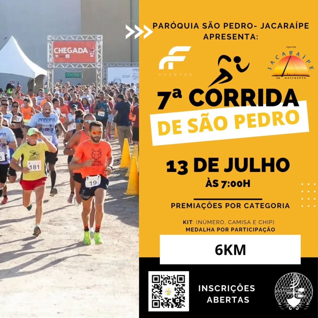— “Quase isso, fi! É a tal da 7ª Corrida de São Pedro! Vai ser no dia 13 de julho, cedinho, lá pras 7 da matina. O povo sai da porta da Igreja Matriz e roda 6 km na marra… quer dizer, na fé e na disposição!”